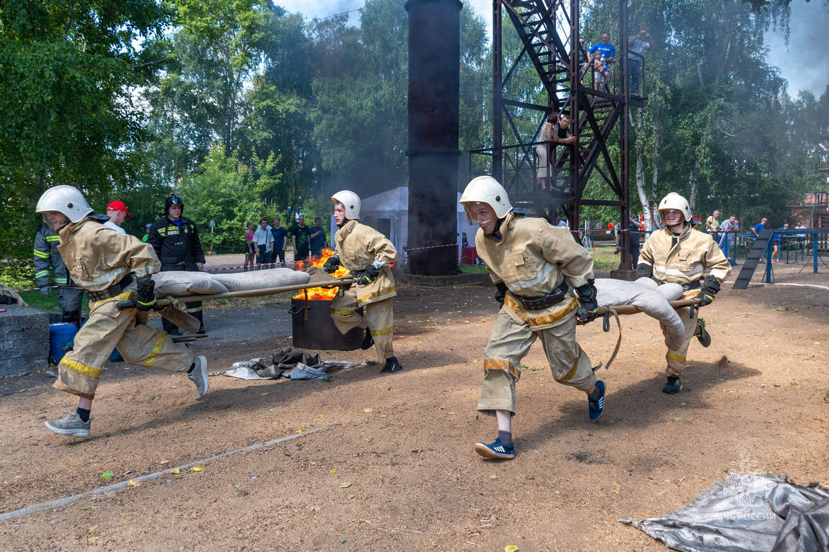 20 коллективов соревновались на скорость в эстафете. Участники преодолевали двухметровый забор и десятиметровый бум, эвакуировали на носилках манекен пострадавшего, тушили пожар огнеупорным покрывалом, поражали мишень из пожарного ствола струей воды.