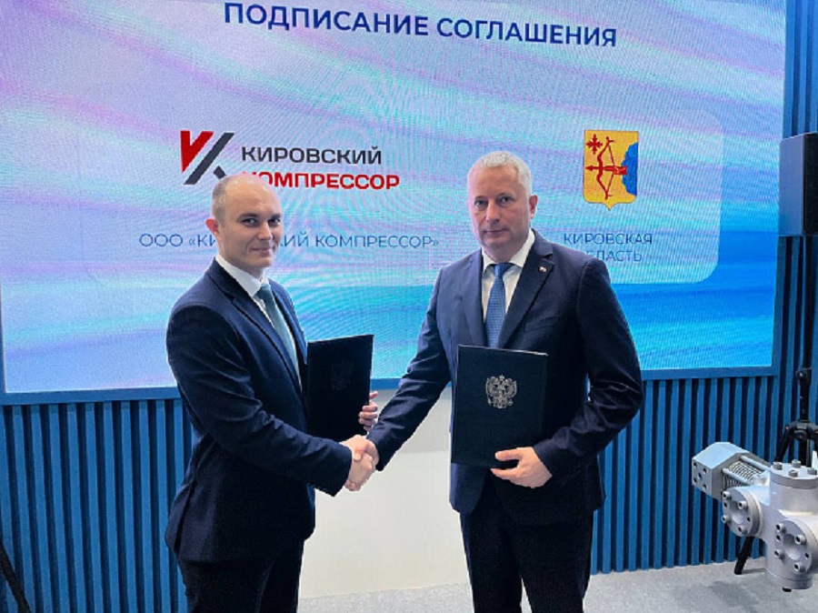 Правительство Кировской области и компания «Кировский компрессор» заключили партнерское соглашение. Подписание состоялось в рамках Петербургского международного газового форума. Документ скрепили подписями первый зампред правительства Кировской области Алексей Жердев и гендиректор ООО «Кировский компрессор» Леонид Куницын.