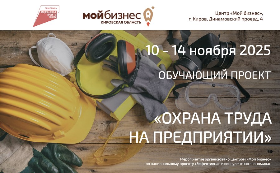 С 10 по 14 ноября 2025 года в центре «Мой бизнес» стартует восьмой поток обучающего проекта «Охрана труда на предприятии». Обучение проводится бесплатно и доступно как очно, так и в онлайн-формате