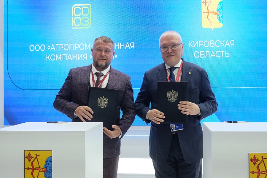 Новости Кирова и Кировской области 20 июня. В Вятскополянском районе реализуют крупнейший инвестиционный проект. На площадке Петербургского международного экономического форума подписано соглашение о сотрудничестве между правительством Кировской области и ООО «Агропромышленная компания «Союз». Соглашение подписали губернатор Кировской области Александр Соколов и руководитель предприятия «СПК Союз» Евгений Бушуев.